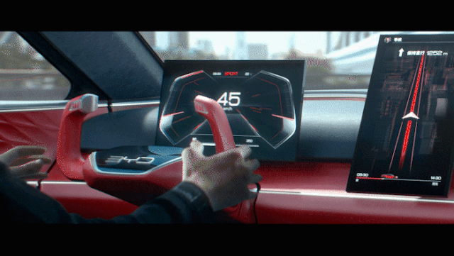 E-SEED GT的智能化座舱中,三屏互联、可隐藏式方向盘、DiLink智联系统等高科技配备一应俱全